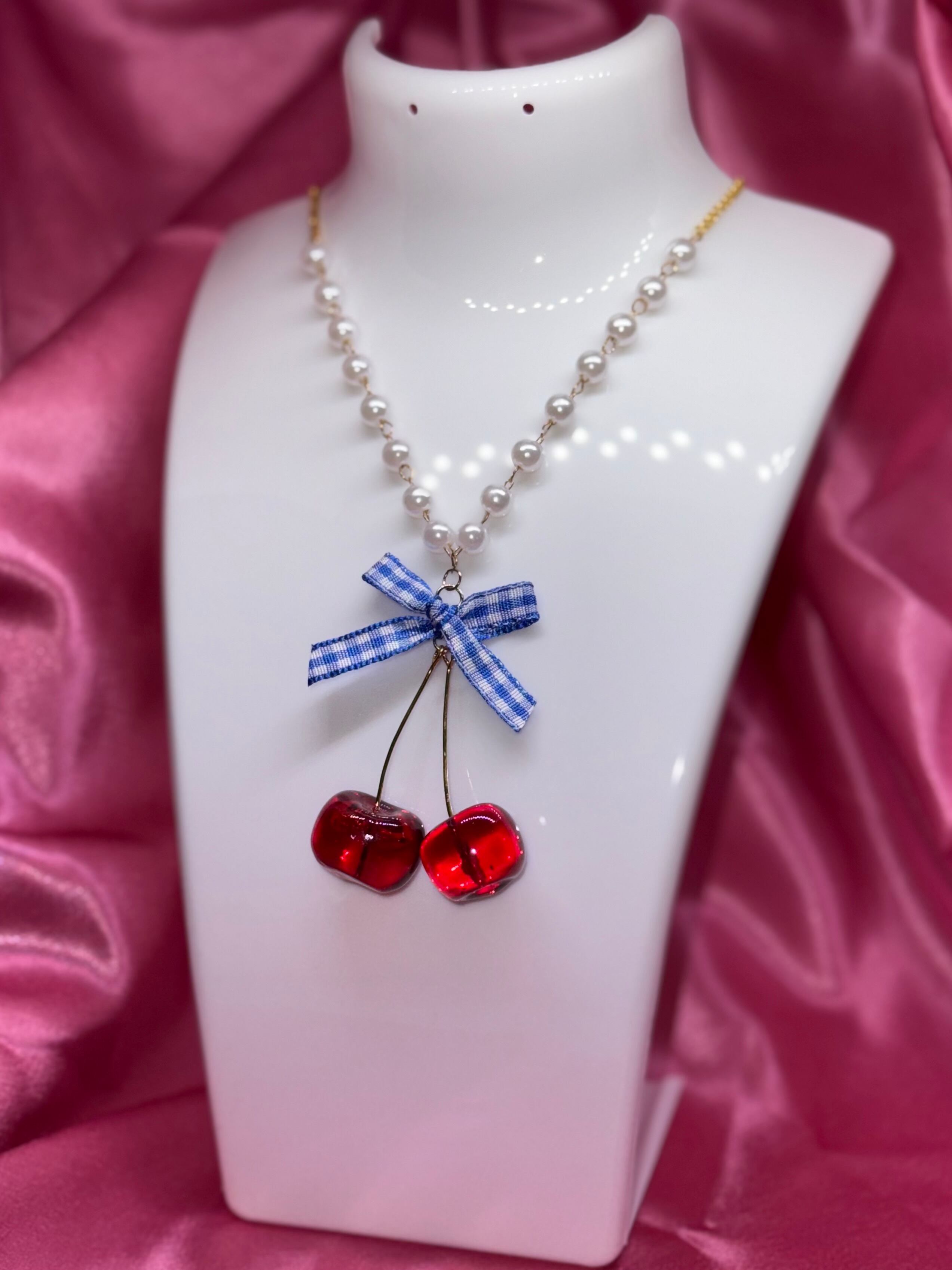 Fresh Cherry Necklace/Red×Blue Ribbon